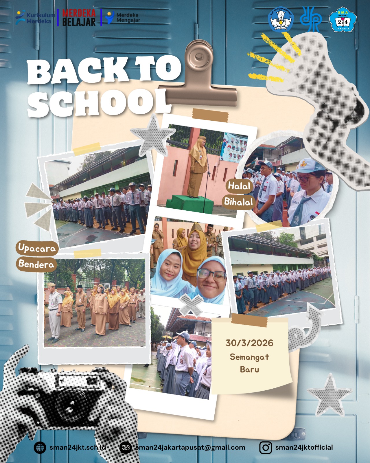 Mengawali kembali kegiatan pembelajaran setelah libur Idul Fitri, seluruh warga SMA Negeri 24 Jakarta melaksanakan hari pertama masuk sekolah dengan penuh semangat dan kebersamaan.